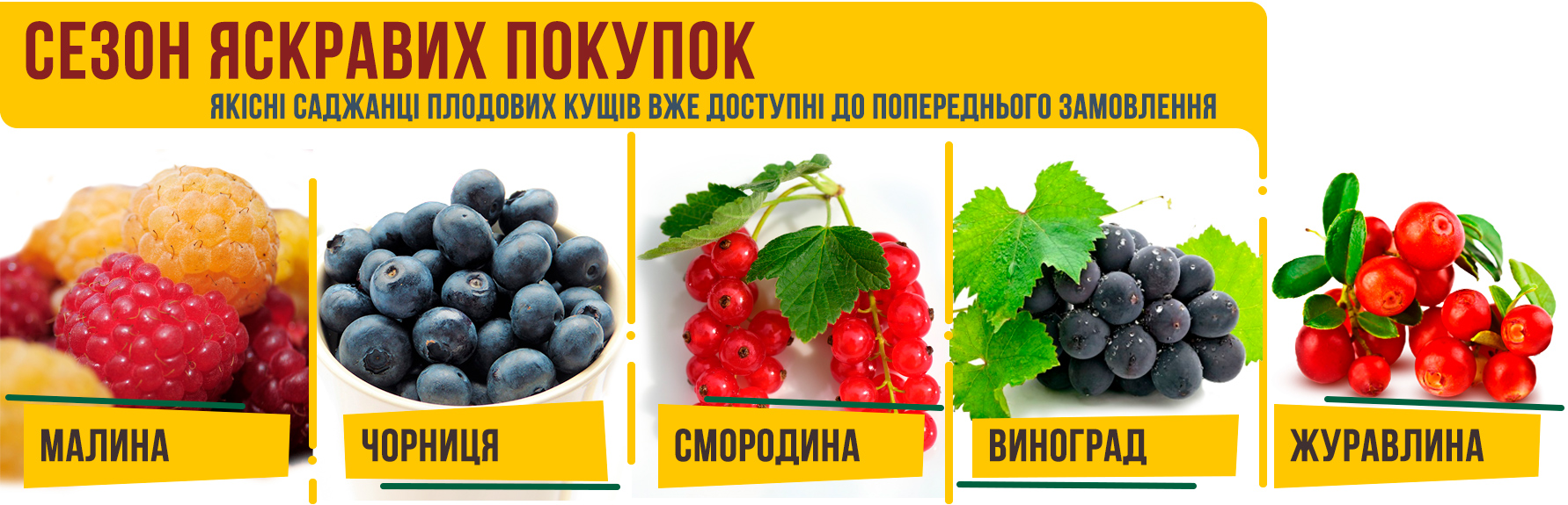 - новинки та цікавинки свіжого асортименту саджанців плодово-ягідних кущів;